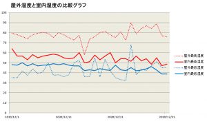 屋外室内比較湿度(濱田邸)